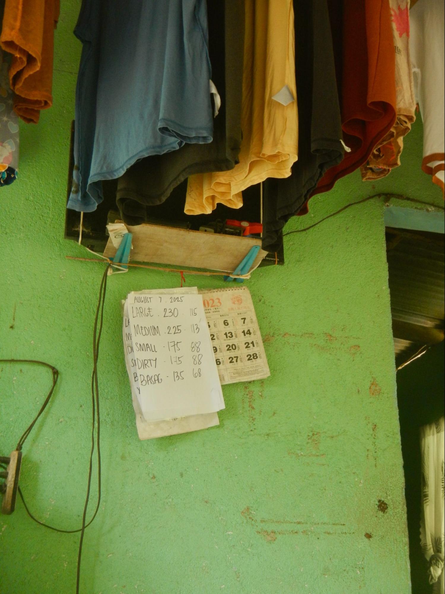 扇風機のぬるい風ではためく手書きの卵の価格表、